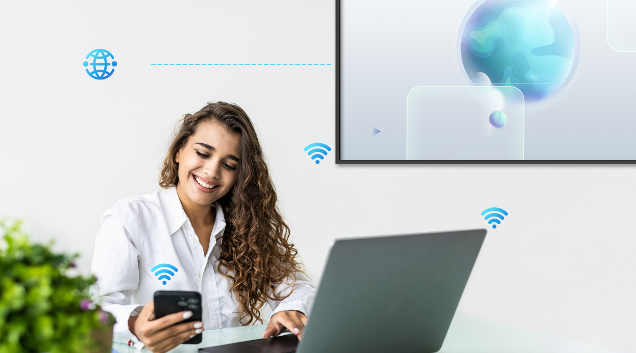 MAXHUB Share provides you with the ability to manage access and privacy while sharing your screen. The device allows for wireless screen sharing for up to four devices simultaneously. It also supports multiple third-party casting protocols, including Airplay, Google Chromecast, and Miracast, ensuring compatibility with a variety of devices.
