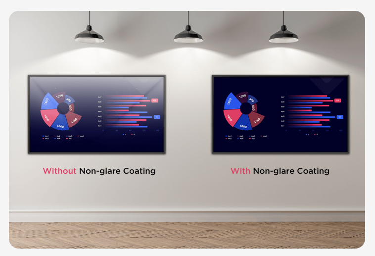 Our non-glare coating provides a clear view, even in bright outdoor conditions, while the increased level of haze visibility improves text readability.