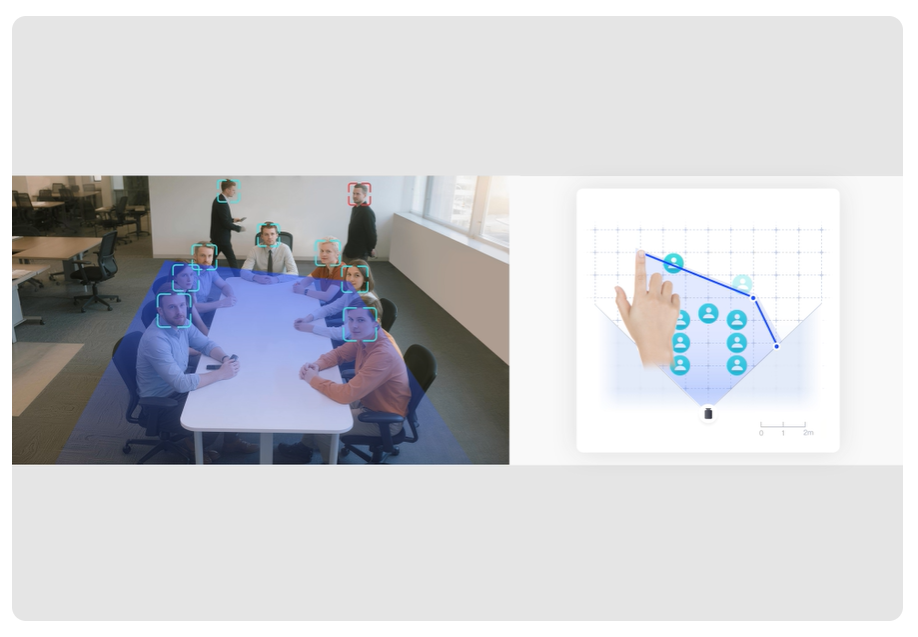 Take command of your meeting view with our innovative Video Fence feature. Precisely control the camera's field of view, ensuring AI tracking and focus are only applied within the designated area. Customize presets, auto-framing, speaker tracking, and other AI functions for a truly tailored meeting experience.
