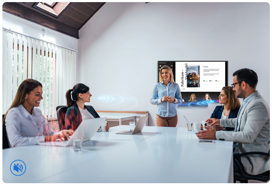 Echo cancellation removes reflected sounds, even in glass meeting rooms, so your voice always comes through clean. Every word is easy to hear, making conversations smooth and natural.