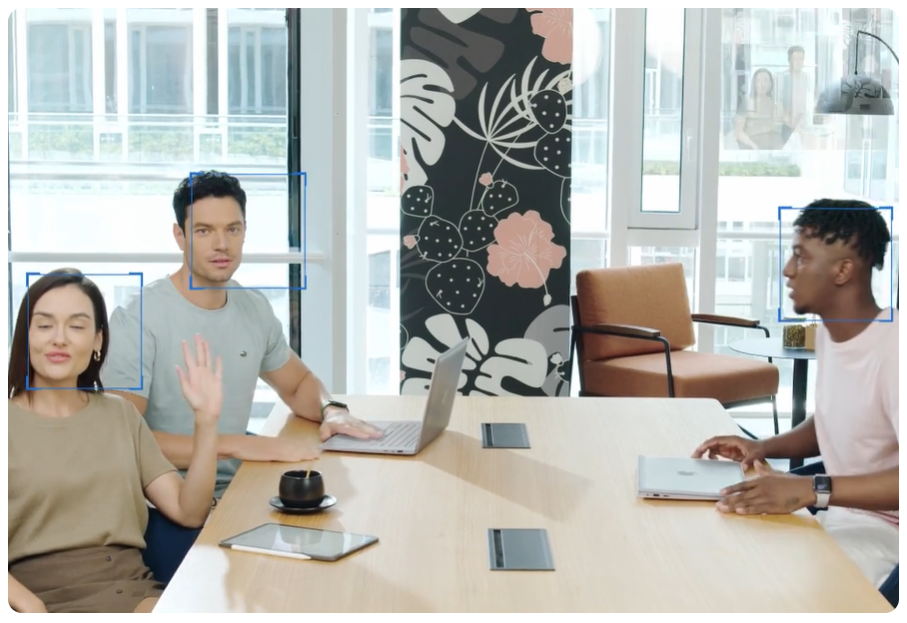 Focus on the conversation, not the camera. Intelligent AI framing technology detects and tracks participants, automatically adjusting the view to keep everyone centered and clearly visible.
