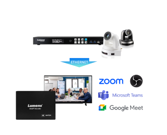 IP Video to USB ConversionOIP-N60D decodes IP video streams from NDI HX and RTSP to UVC/UAC-compliant USB for use with video conferencing platforms. The device also supports NDI Virtual USB output. |