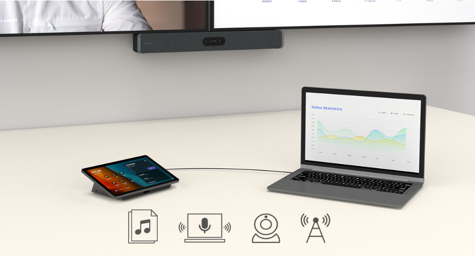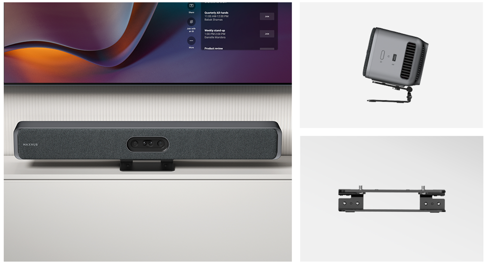 The industry’s first Windows-based Teams Rooms videobar with a 200MP Quad Sight lens and integrated FlexMount—an all-in-one design ideal for medium to large rooms.