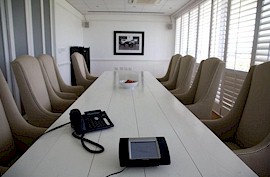 The AV installation in the Board Room offers the same ease of use, as well as the same power and control as the other five zones. Equipment includes 1 x Panasonic PTLB 50 Projector, a 2.25m x 1.75m motorised screen, 4 x JBL Control 25 AV satellite speakers and 1 x Crestron ST-1700 Touchpanel for easy control of all functions.  The installation meets every requirement for conducting meetings and presentations, and with its panoramic view of the main field, polo commentators can simply plug in a wireless mic and effortlessly broadcast their commentary to spectators at the matches.